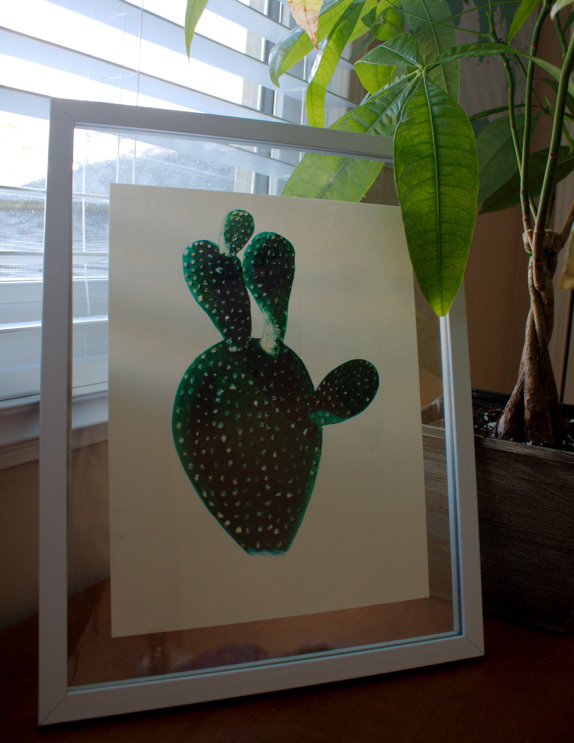 Turn your living space into an art gallery with this Bunny Ear Cactus print! Each print is a high-quality picture of an original acrylic painting on heavyweight canvas paper.