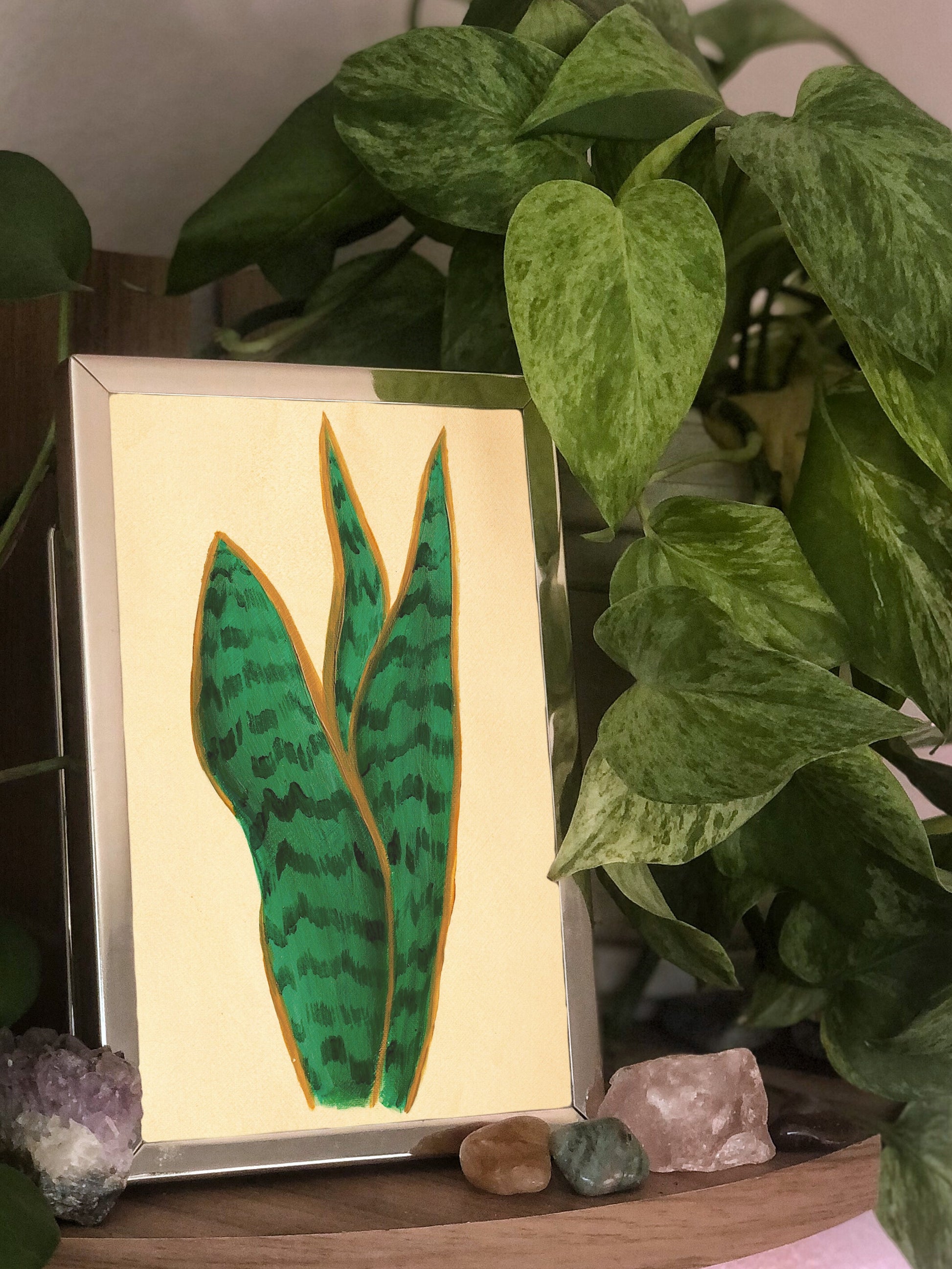 Turn your living space into an art gallery with this Snake Plant print! Each print is a high-quality picture of an original acrylic painting on heavyweight canvas paper.